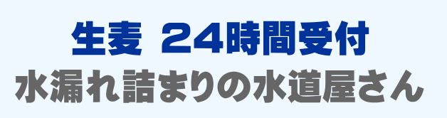 生麦で早くて安い水道修理業者をお探しの方は当店までお問い合わせください。蛇口の水漏れ、トイレつまり、排水口の溢れ、パイプ修理など、生麦での水道トラブルは最短15分到着です。生麦は24時間受付。生麦エリアは見積もり無料、出張費0円でスタッフがかけつけます。生麦にお住まいの方で水廻りのお困りごとはご相談ください。